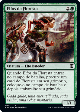 Rules When Wood Elves enters the battlefield, search your library for a Forest card, put that card onto the battlefield, then shuffle.