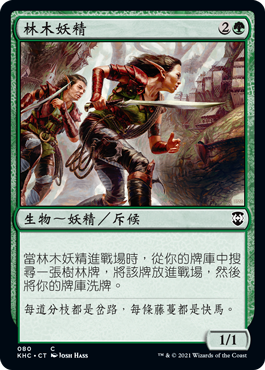 | Rules | When Wood Elves enters the battlefield, search your library for a Forest card, put that card onto the battlefield, then shuffle. |