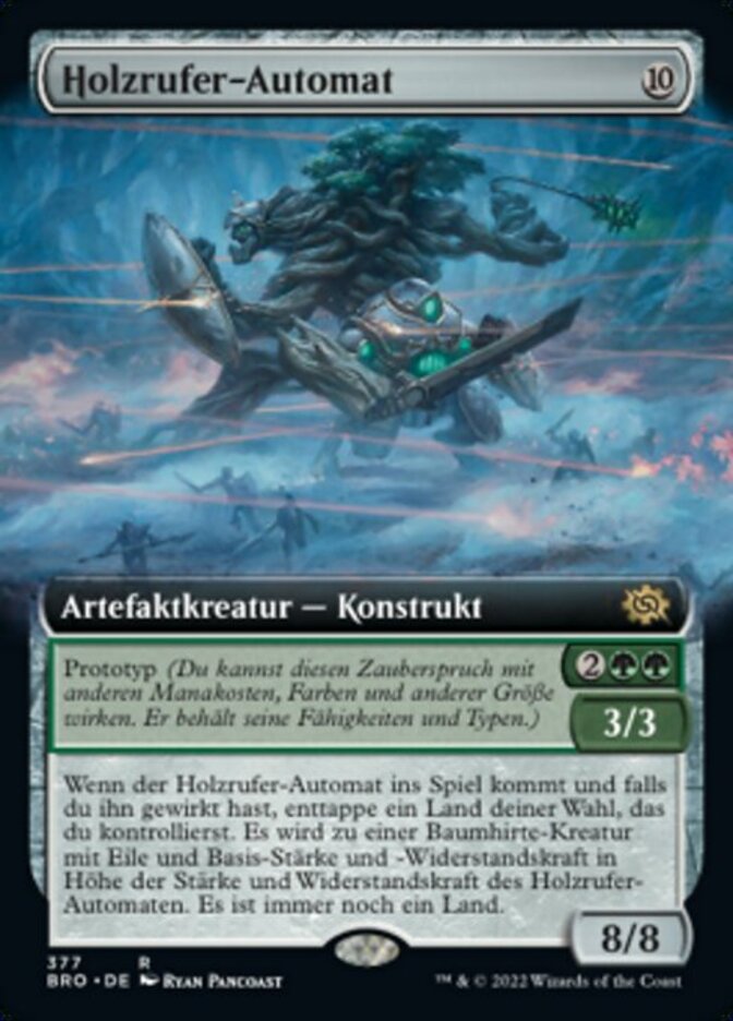 | Rules | Prototype — 3/3 (You may cast this spell with different mana cost, color, and size. It keeps its abilities and types.) When Woodcaller Automaton enters the battlefield, if you cast it, untap target land you control. It becomes a Treefolk creature with haste and base power and toughness equal to Woodcaller Automaton's power and toughness. It's still a land. |