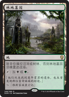 | Rules | Woodland Cemetery enters the battlefield tapped unless you control a Swamp or a Forest. : Add or . |