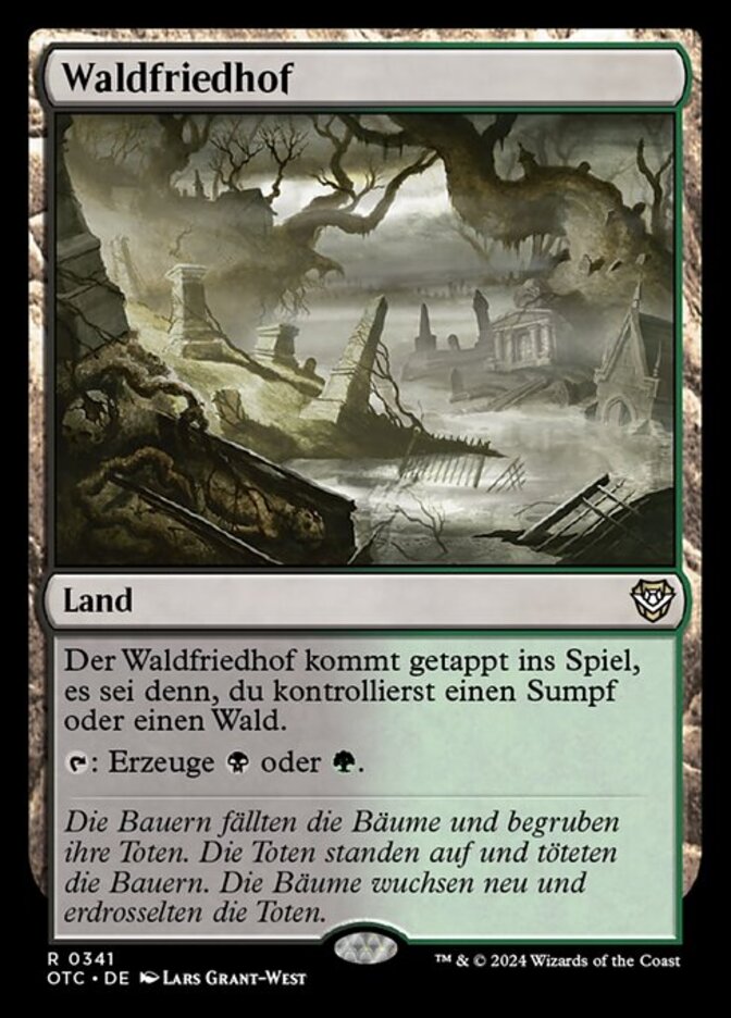 | Rules | Woodland Cemetery enters the battlefield tapped unless you control a Swamp or a Forest. : Add or . |