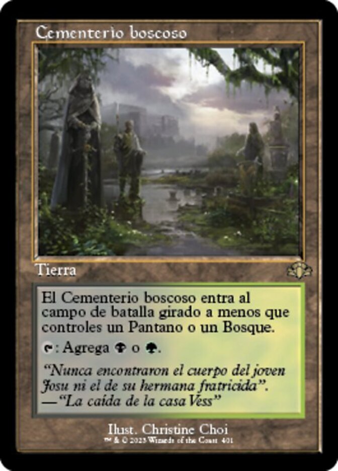| Rules | Woodland Cemetery enters the battlefield tapped unless you control a Swamp or a Forest. : Add or . |