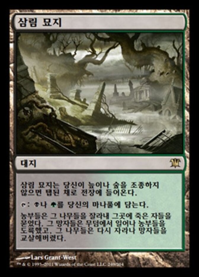 | Rules | Woodland Cemetery enters the battlefield tapped unless you control a Swamp or a Forest. : Add or . |