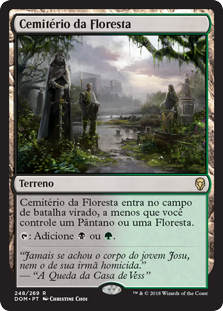 | Rules | Woodland Cemetery enters the battlefield tapped unless you control a Swamp or a Forest. : Add or . |
