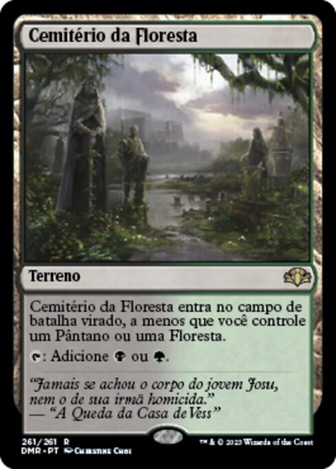 | Rules | Woodland Cemetery enters the battlefield tapped unless you control a Swamp or a Forest. : Add or . |