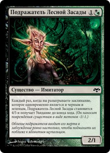 | Rules | Whenever you cast a spell that's both black and green, Woodlurker Mimic has base power and toughness 4/5 until end of turn and gains wither until end of turn. (It deals damage to creatures in the form of -1/-1 counters.) |