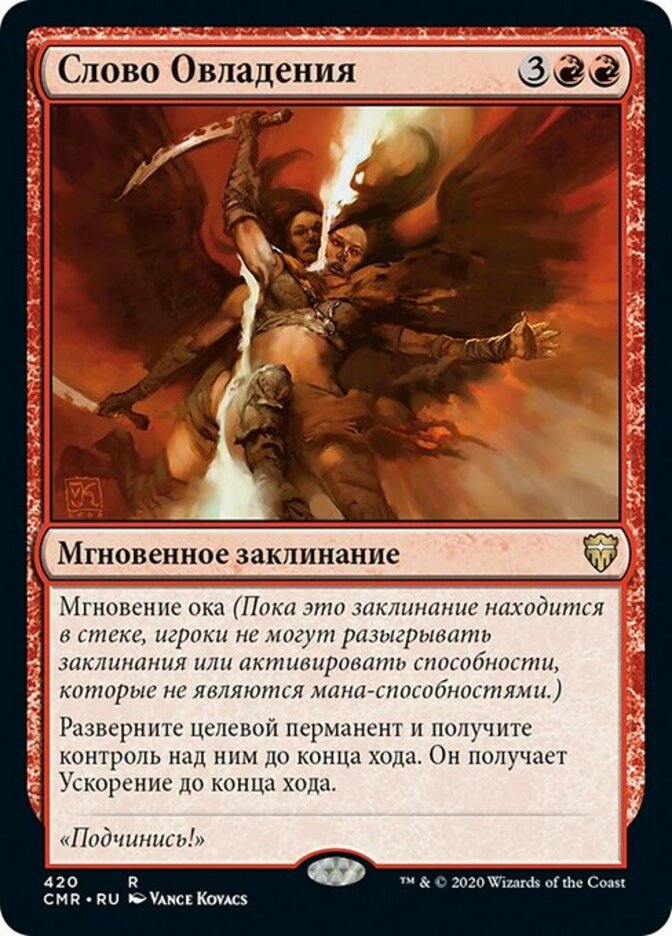 | Rules | Split second (As long as this spell is on the stack, players can't cast spells or activate abilities that aren't mana abilities.) Untap target permanent and gain control of it until end of turn. It gains haste until end of turn. |
