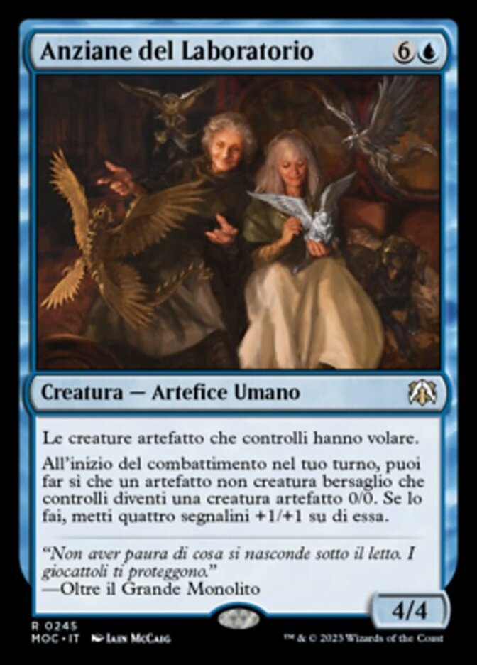 | Rules | Artifact creatures you control have flying. At the beginning of combat on your turn, you may have target noncreature artifact you control become a 0/0 artifact creature. If you do, put four +1/+1 counters on it. |