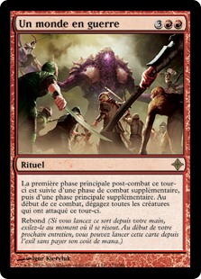 | Rules | After the first postcombat main phase this turn, there's an additional combat phase followed by an additional main phase. At the beginning of that combat, untap all creatures that attacked this turn. Rebound (If you cast this spell from your hand, exile it as it resolves. At the beginning of your next upkeep, you may cast this card from exile without paying its mana cost.) |