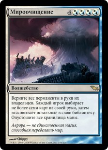 | Rules | Return all permanents to their owners' hands. Each player chooses up to seven cards in their hand, then shuffles the rest into their library. Each player loses all unspent mana. |