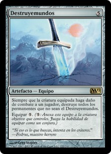 | Rules | Whenever equipped creature deals combat damage to a player, destroy all permanents other than Worldslayer. Equip (: Attach to target creature you control. Equip only as a sorcery.) |