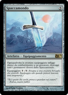 | Rules | Whenever equipped creature deals combat damage to a player, destroy all permanents other than Worldslayer. Equip (: Attach to target creature you control. Equip only as a sorcery.) |