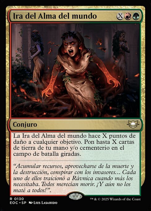 | Rules | Worldsoul's Rage deals X damage to any target. Put up to X land cards from your hand and/or graveyard onto the battlefield tapped. |