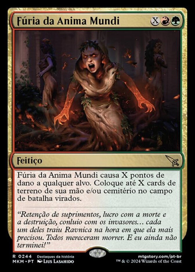 | Rules | Worldsoul's Rage deals X damage to any target. Put up to X land cards from your hand and/or graveyard onto the battlefield tapped. |