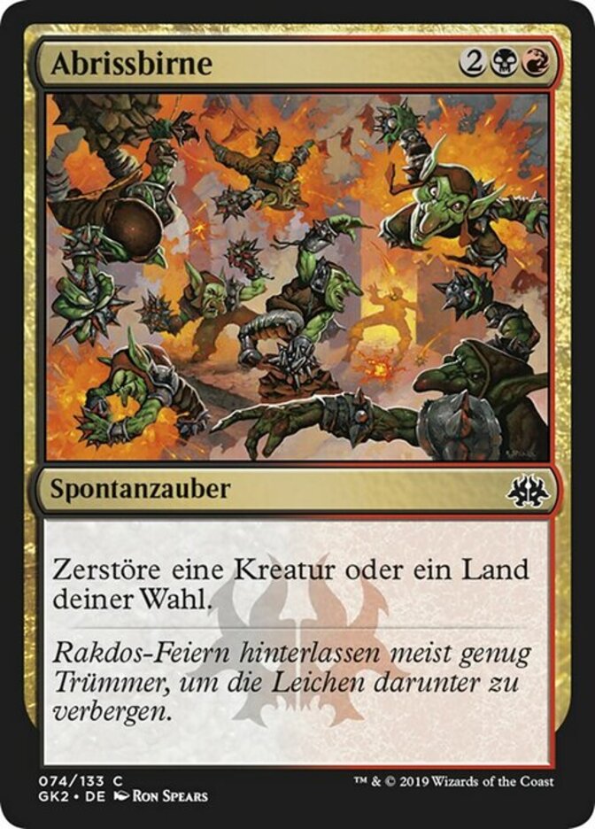| Flavor | Rakdos festivals almost leave enough rubble in their wake to hide the bodies. |