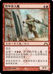| Rules | Double strike Bloodrush — , Discard Wrecking Ogre: Target attacking creature gets +3/+3 and gains double strike until end of turn. |