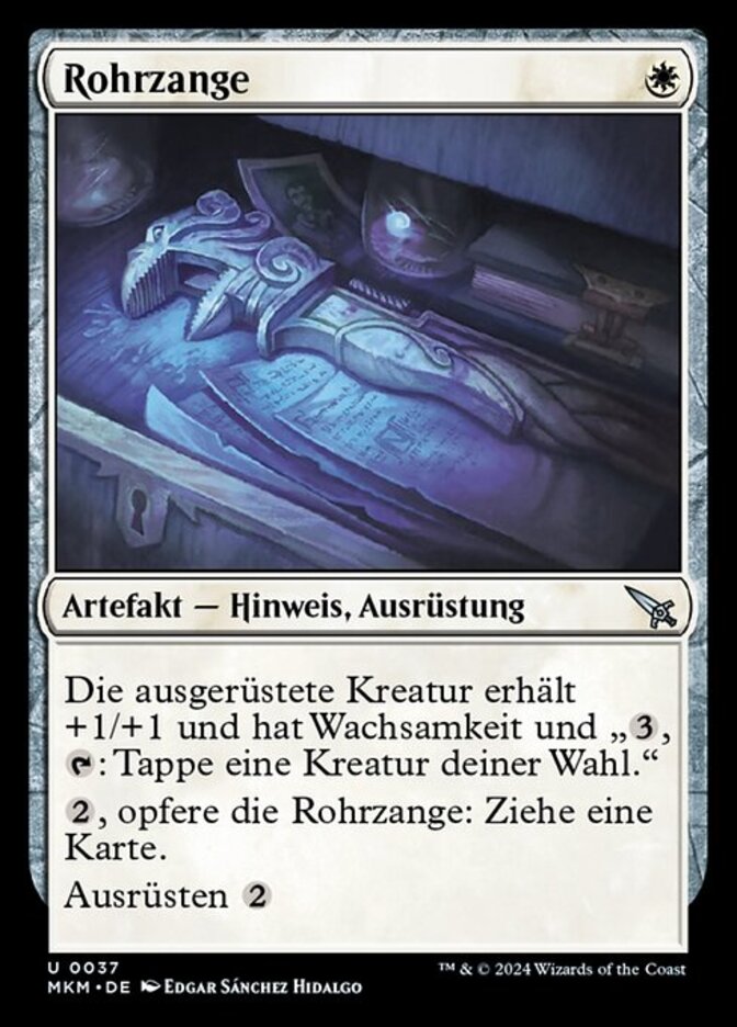| Rules | Equipped creature gets +1/+1 and has vigilance and ", : Tap target creature." , Sacrifice Wrench: Draw a card. Equip |