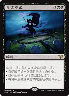| Rules | Choose three. You may choose the same mode more than once. • Target player draws a card and loses 1 life. • Target creature gets -2/-2 until end of turn. • Return target creature card from your graveyard to your hand. |