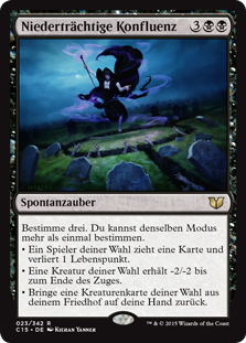 | Rules | Choose three. You may choose the same mode more than once. • Target player draws a card and loses 1 life. • Target creature gets -2/-2 until end of turn. • Return target creature card from your graveyard to your hand. |