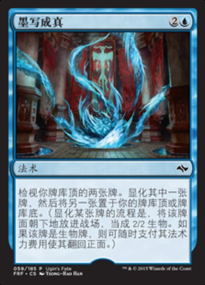 | Rules | Look at the top two cards of your library. Manifest one of those cards, then put the other on the top or bottom of your library. (To manifest a card, put it onto the battlefield face down as a 2/2 creature. Turn it face up any time for its mana cost if it's a creature card.) |