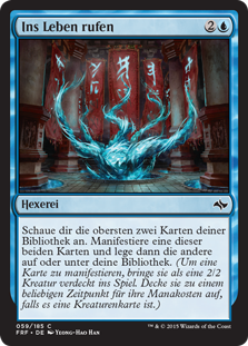 | Rules | Look at the top two cards of your library. Manifest one of those cards, then put the other on the top or bottom of your library. (To manifest a card, put it onto the battlefield face down as a 2/2 creature. Turn it face up any time for its mana cost if it's a creature card.) |