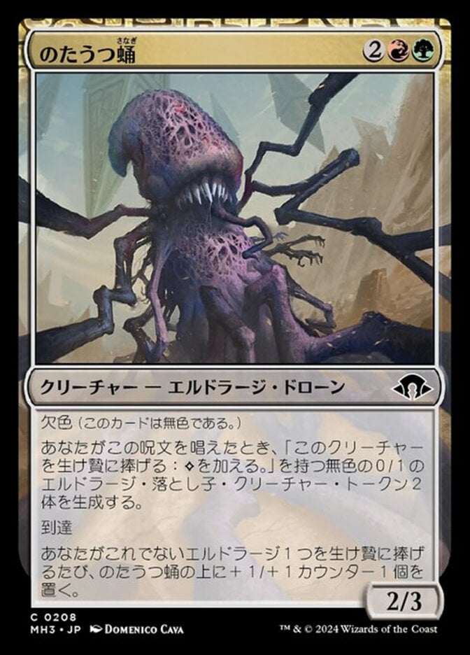 | Rules | Devoid (This card has no color.) When you cast this spell, create two 0/1 colorless Eldrazi Spawn creature tokens with "Sacrifice this creature: Add ." Reach Whenever you sacrifice another Eldrazi, put a +1/+1 counter on Writhing Chrysalis. |