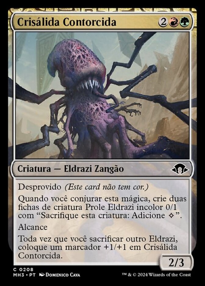 | Rules | Devoid (This card has no color.) When you cast this spell, create two 0/1 colorless Eldrazi Spawn creature tokens with "Sacrifice this creature: Add ." Reach Whenever you sacrifice another Eldrazi, put a +1/+1 counter on Writhing Chrysalis. |