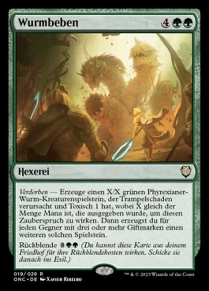 | Rules | Corrupted — Create an X/X green Phyrexian Wurm creature token with trample and toxic 1, where X is the amount of mana spent to cast this spell. Then for each opponent with three or more poison counters, you create another one of those tokens. Flashback (You may cast this card from your graveyard for its flashback cost. Then exile it.) |