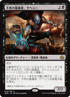 | Rules | Haste Whenever a creature an opponent controls dies, put a +1/+1 counter on Yahenni, Undying Partisan. Sacrifice another creature: Yahenni gains indestructible until end of turn. |
