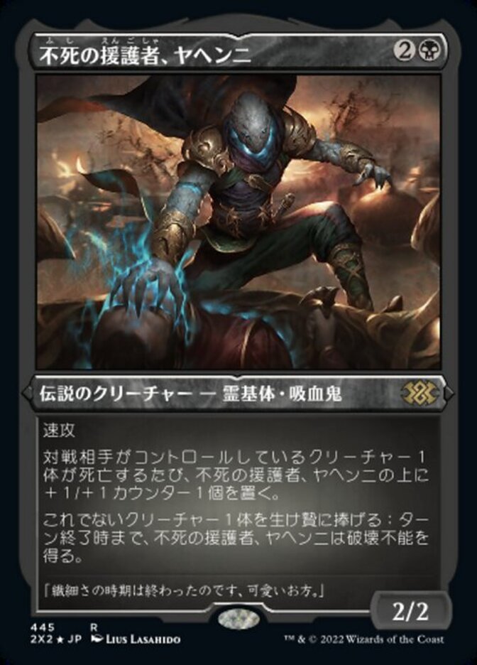 | Rules | Haste Whenever a creature an opponent controls dies, put a +1/+1 counter on Yahenni, Undying Partisan. Sacrifice another creature: Yahenni gains indestructible until end of turn. |