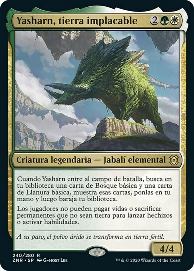 | Rules | When Yasharn enters the battlefield, search your library for a basic Forest card and a basic Plains card, reveal those cards, put them into your hand, then shuffle. Players can't pay life or sacrifice nonland permanents to cast spells or activate abilities. |