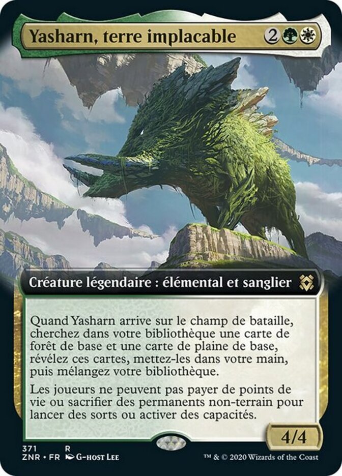 | Rules | When Yasharn enters the battlefield, search your library for a basic Forest card and a basic Plains card, reveal those cards, put them into your hand, then shuffle. Players can't pay life or sacrifice nonland permanents to cast spells or activate abilities. |