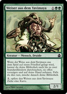 | Rules | When Yavimaya Elder dies, you may search your library for up to two basic land cards, reveal them, put them into your hand, then shuffle. , Sacrifice Yavimaya Elder: Draw a card. |