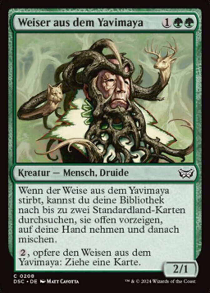| Rules | When Yavimaya Elder dies, you may search your library for up to two basic land cards, reveal them, put them into your hand, then shuffle. , Sacrifice Yavimaya Elder: Draw a card. |