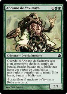 | Rules | When Yavimaya Elder dies, you may search your library for up to two basic land cards, reveal them, put them into your hand, then shuffle. , Sacrifice Yavimaya Elder: Draw a card. |