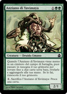 | Rules | When Yavimaya Elder dies, you may search your library for up to two basic land cards, reveal them, put them into your hand, then shuffle. , Sacrifice Yavimaya Elder: Draw a card. |