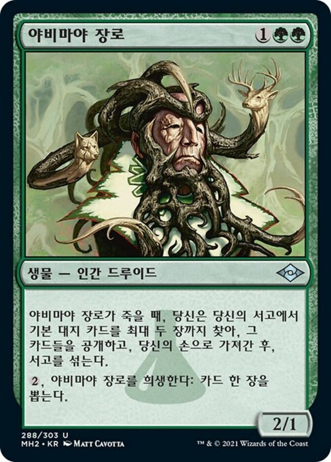 | Rules | When Yavimaya Elder dies, you may search your library for up to two basic land cards, reveal them, put them into your hand, then shuffle. , Sacrifice Yavimaya Elder: Draw a card. |