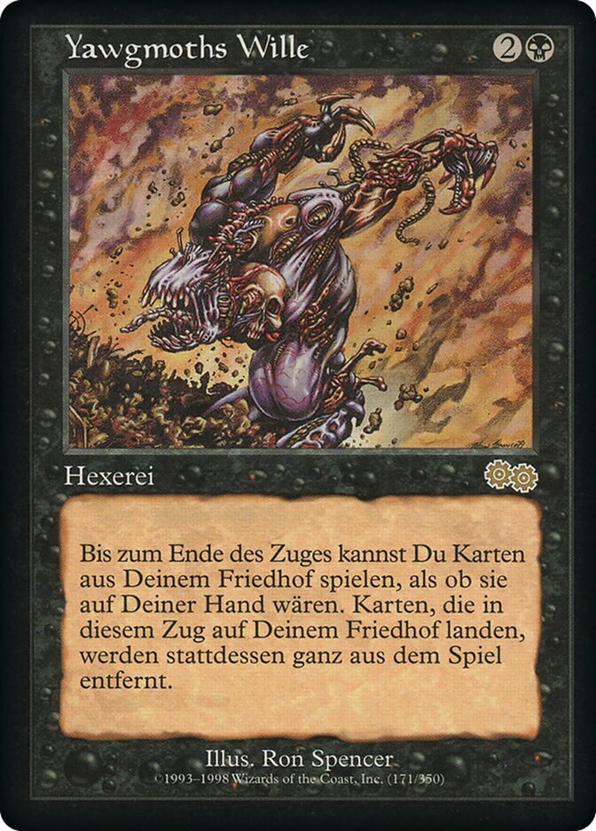 | Rules | Until end of turn, you may play lands and cast spells from your graveyard. If a card would be put into your graveyard from anywhere this turn, exile that card instead. |