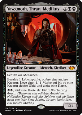 | Rules | Protection from Humans Pay 1 life, Sacrifice another creature: Put a -1/-1 counter on up to one target creature and draw a card. , Discard a card: Proliferate. (Choose any number of permanents and/or players, then give each another counter of each kind already there.) |