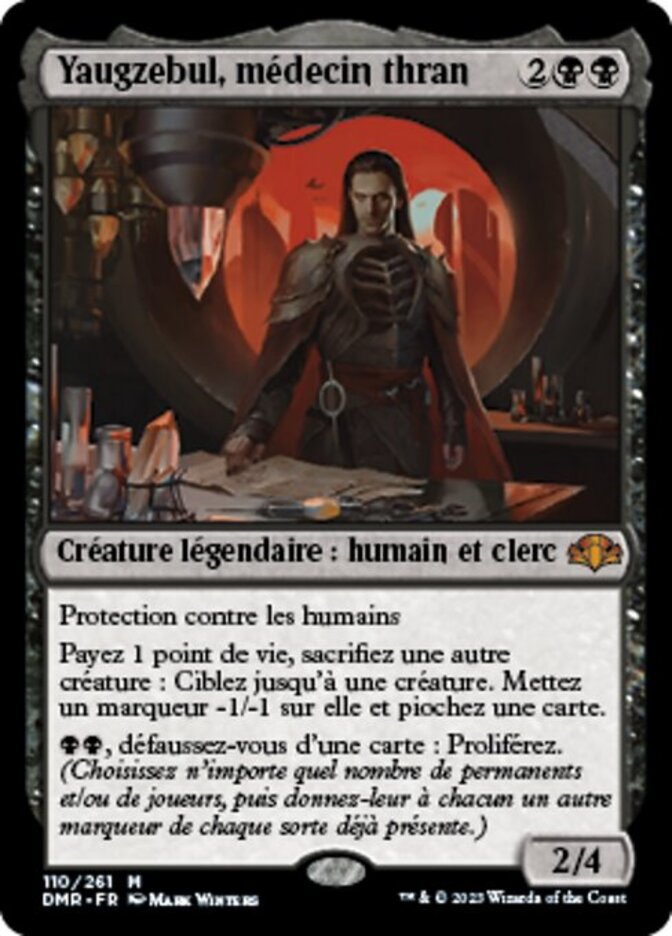| Rules | Protection from Humans Pay 1 life, Sacrifice another creature: Put a -1/-1 counter on up to one target creature and draw a card. , Discard a card: Proliferate. (Choose any number of permanents and/or players, then give each another counter of each kind already there.) |