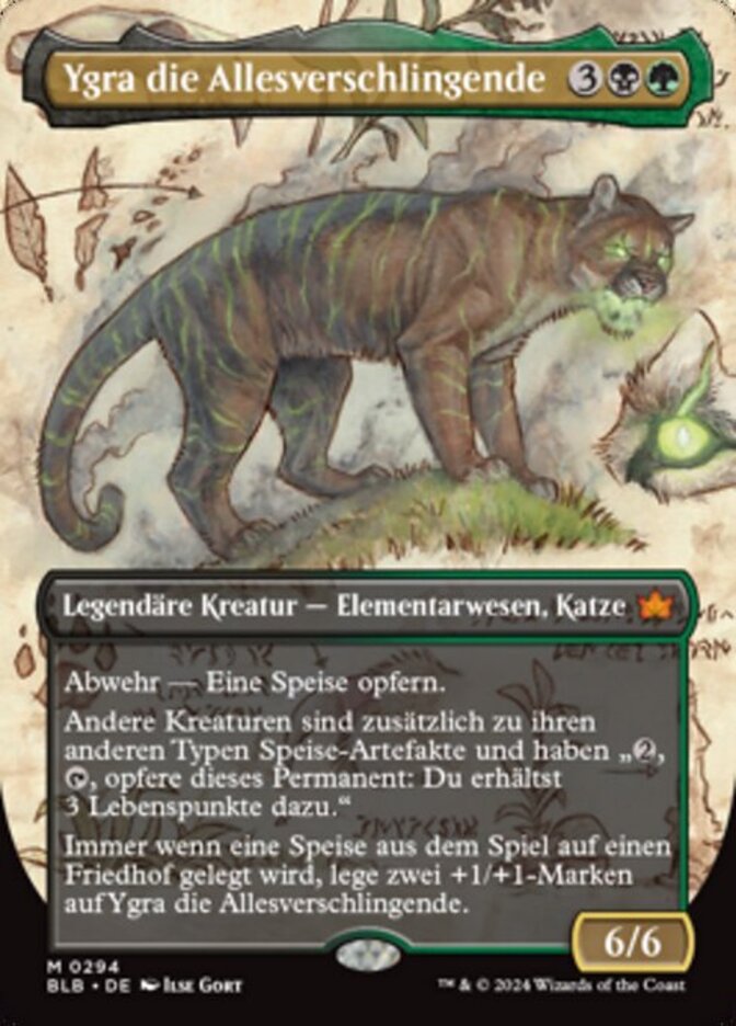 | Rules | Ward—Sacrifice a Food. Other creatures are Food artifacts in addition to their other types and have ", , Sacrifice this permanent: You gain 3 life." Whenever a Food is put into a graveyard from the battlefield, put two +1/+1 counters on Ygra, Eater of All. |
