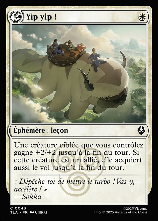 | Flavor | "You better throw in an extra 'yip'! We gotta move!" —Sokka |