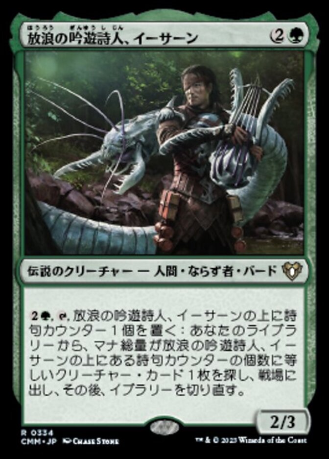 | Rules | , , Put a verse counter on Yisan, the Wanderer Bard: Search your library for a creature card with mana value equal to the number of verse counters on Yisan, put it onto the battlefield, then shuffle. |