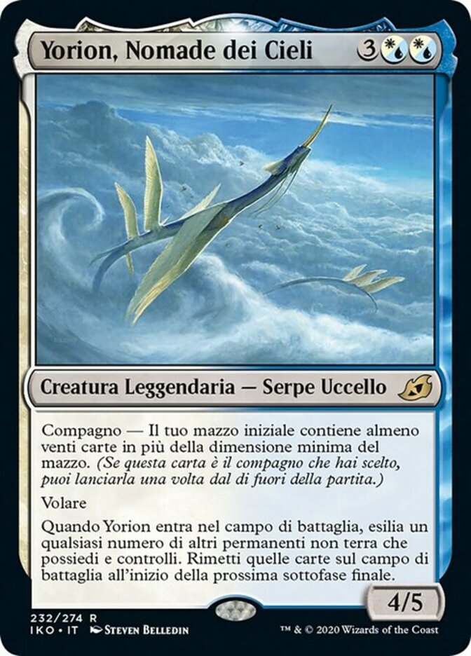 | Rules | Companion — Your starting deck contains at least twenty cards more than the minimum deck size. (If this card is your chosen companion, you may put it into your hand from outside the game for any time you could cast a sorcery.) Flying When Yorion enters the battlefield, exile any number of other nonland permanents you own and control. Return those cards to the battlefield at the beginning of the next end step. |