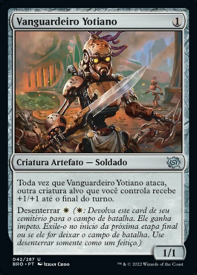 | Rules | Whenever Yotian Frontliner attacks, another target creature you control gets +1/+1 until end of turn. Unearth (: Return this card from your graveyard to the battlefield. It gains haste. Exile it at the beginning of the next end step or if it would leave the battlefield. Unearth only as a sorcery.) |