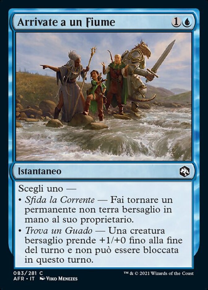| Rules | Choose one — • Fight the Current — Return target nonland permanent to its owner's hand. • Find a Crossing — Target creature gets +1/+0 until end of turn and can't be blocked this turn. |