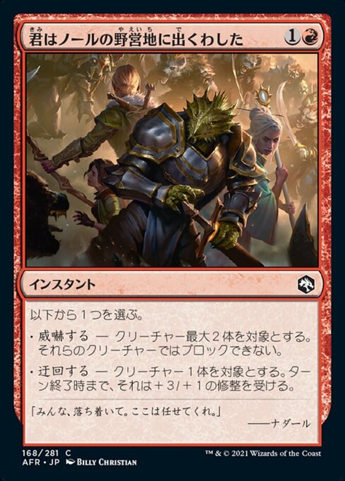 | Rules | Choose one — • Intimidate Them — Up to two target creatures can't block this turn. • Fend Them Off — Target creature gets +3/+1 until end of turn. |