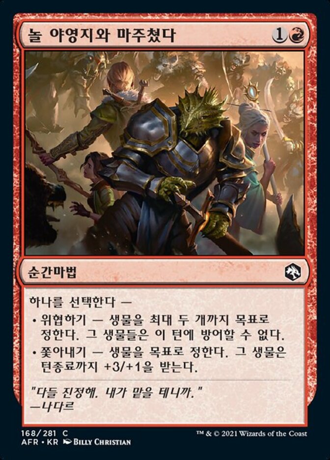 | Rules | Choose one — • Intimidate Them — Up to two target creatures can't block this turn. • Fend Them Off — Target creature gets +3/+1 until end of turn. |