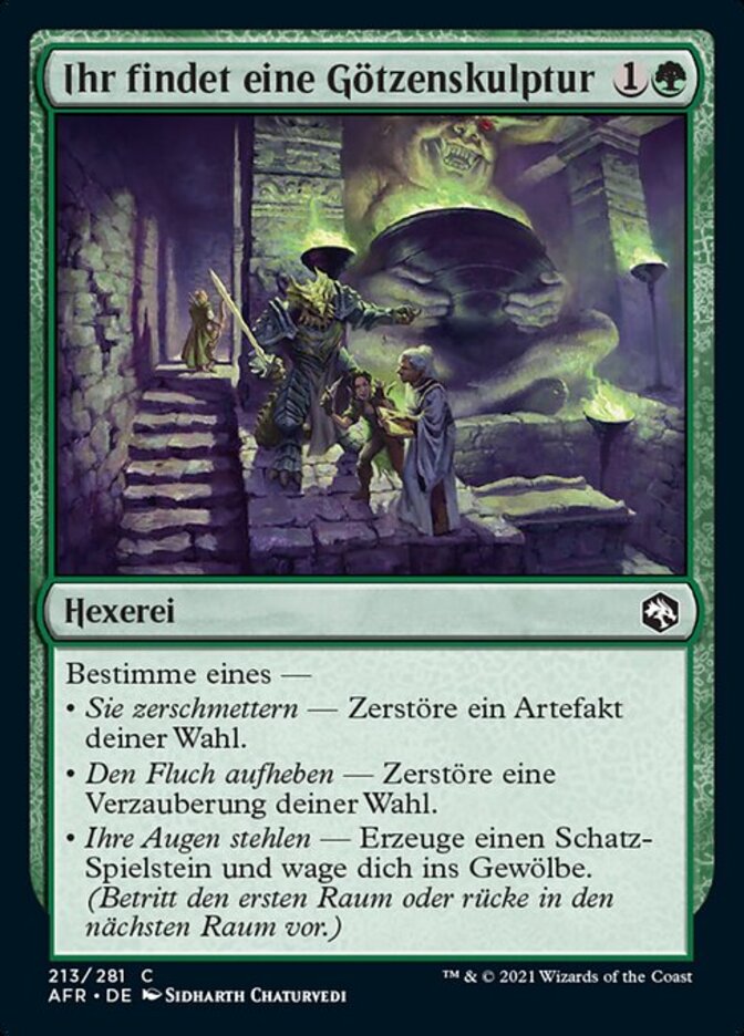 | Rules | Choose one — • Smash It — Destroy target artifact. • Lift the Curse — Destroy target enchantment. • Steal Its Eyes — Create a Treasure token and venture into the dungeon. (Enter the first room or advance to the next room.) |