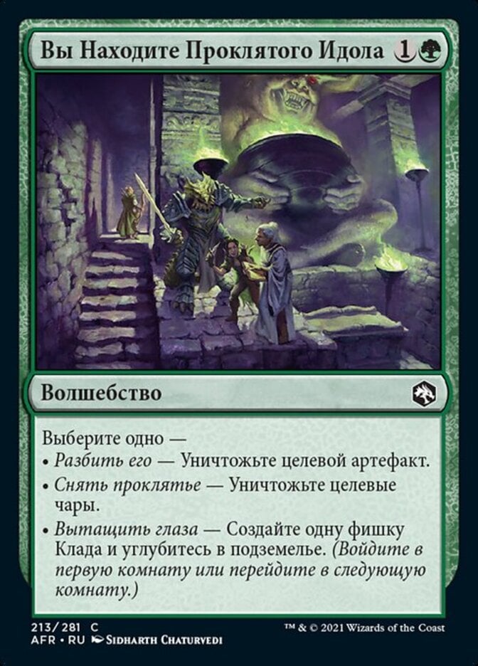 | Rules | Choose one — • Smash It — Destroy target artifact. • Lift the Curse — Destroy target enchantment. • Steal Its Eyes — Create a Treasure token and venture into the dungeon. (Enter the first room or advance to the next room.) |